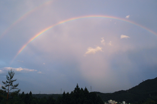 そうしたら、ダムを登る途中で見事な虹に遭遇。